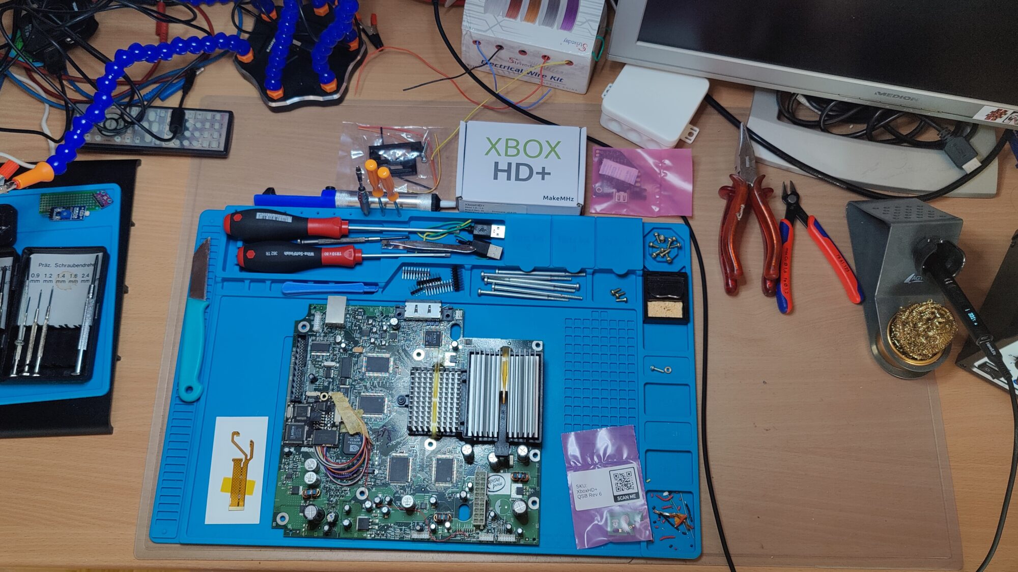 Ich hab mich daran gemacht, eine originale XBOX aus dem Jahr 2003 mit einem XBOX HD+ Mod zu versehen. Gründe gabs hierzu einige. Zuerst einmal ist die XBOX die meine Kindheit/Jugend prägende Konsole gewesen. Des weiteren habe ich sie durch ihre hervorragende Modbarkeit schätzen gelernt. Dementsprechend lange ist mein 2003 gefertigtes Modell auch bereits modifiziert. Zu guter Letzt fehlen meinem aktuellen Heimkino Setup im Wohnzimmer jegliche analoge Eingabeports. Bei dem alten habe ich mittels Aftermarket-Kabeln recht anständiges Videosignal über Component bekommen. Allerdings hatte ich hier auch nie eines, welches mir den optischen Ausgang für Dolby Digital / DTS 5.1 Sound bereitstellen könnte. Bonuspunkte wollte ich mit dem Abschließen meines ersten, komplizierteren SMD / Flexkabelgelöts sammeln. Hierfür habe ich mir in letzter Zeit extra Sachen wie Mikroskop, Lötkolben, Flussmittel, Entlötlitze etc. gekauft.