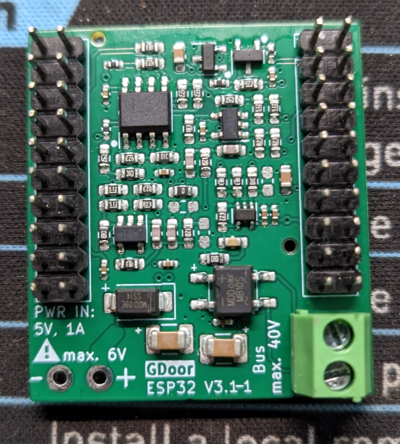 Ich habe den Web Installer (im Chromium-basierten Browser) verwendet um die GDoor Firmware direkt auf den ESP32mini zu flashen, den ich über Amazon bezogen habe. Anschließend stecke ich den ESP32 mit dem USB-Port in Richtung der Bus-Schraubklemmen auf den GDoor Adapter.