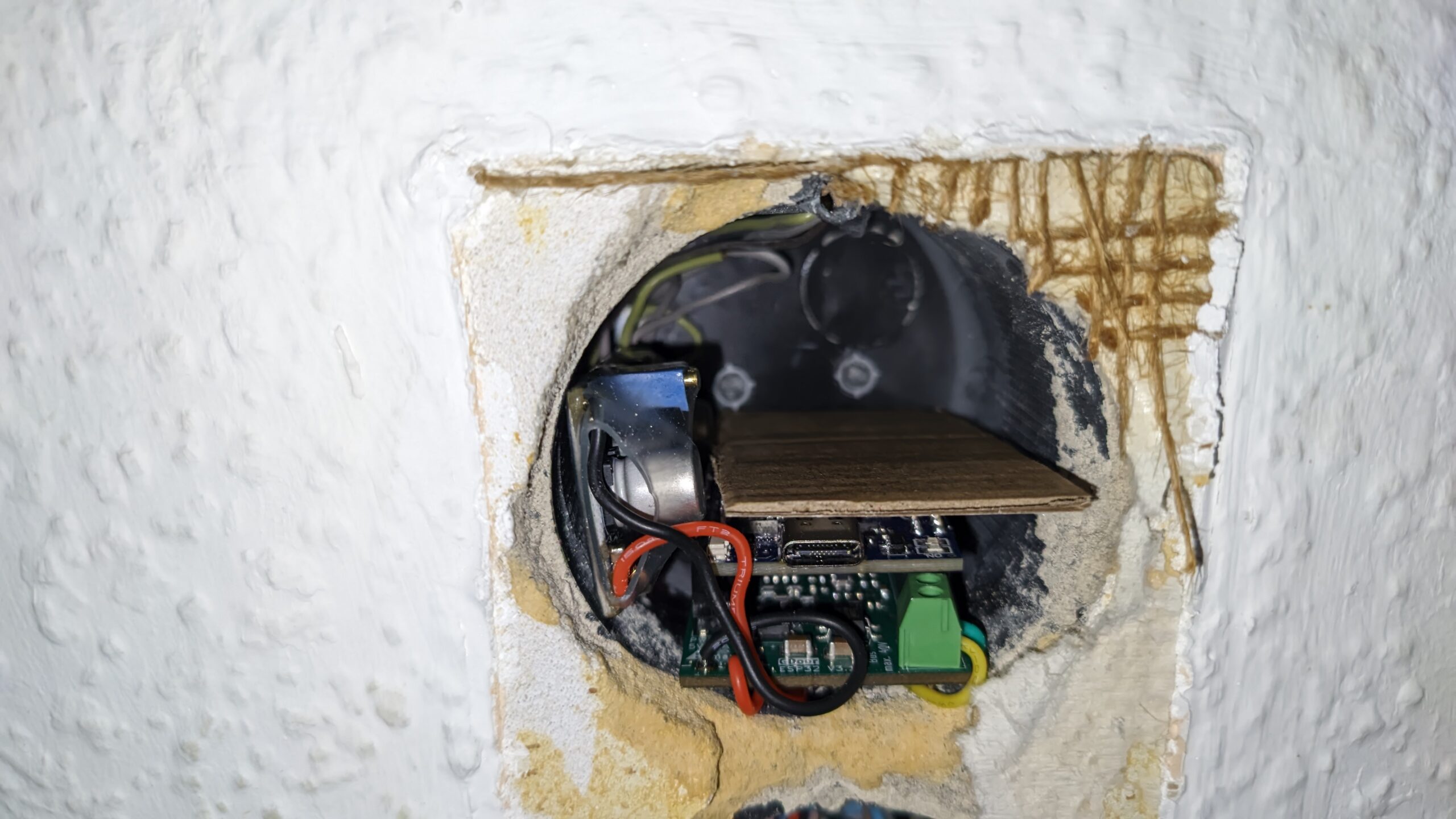 Bei der Demontage der Wohnungsstation ist mir auch direkt eine ungenutze Unterputzdose aufgefallen, die sich dafür anbietet, später den ESP darin verschwinden zu lassen.