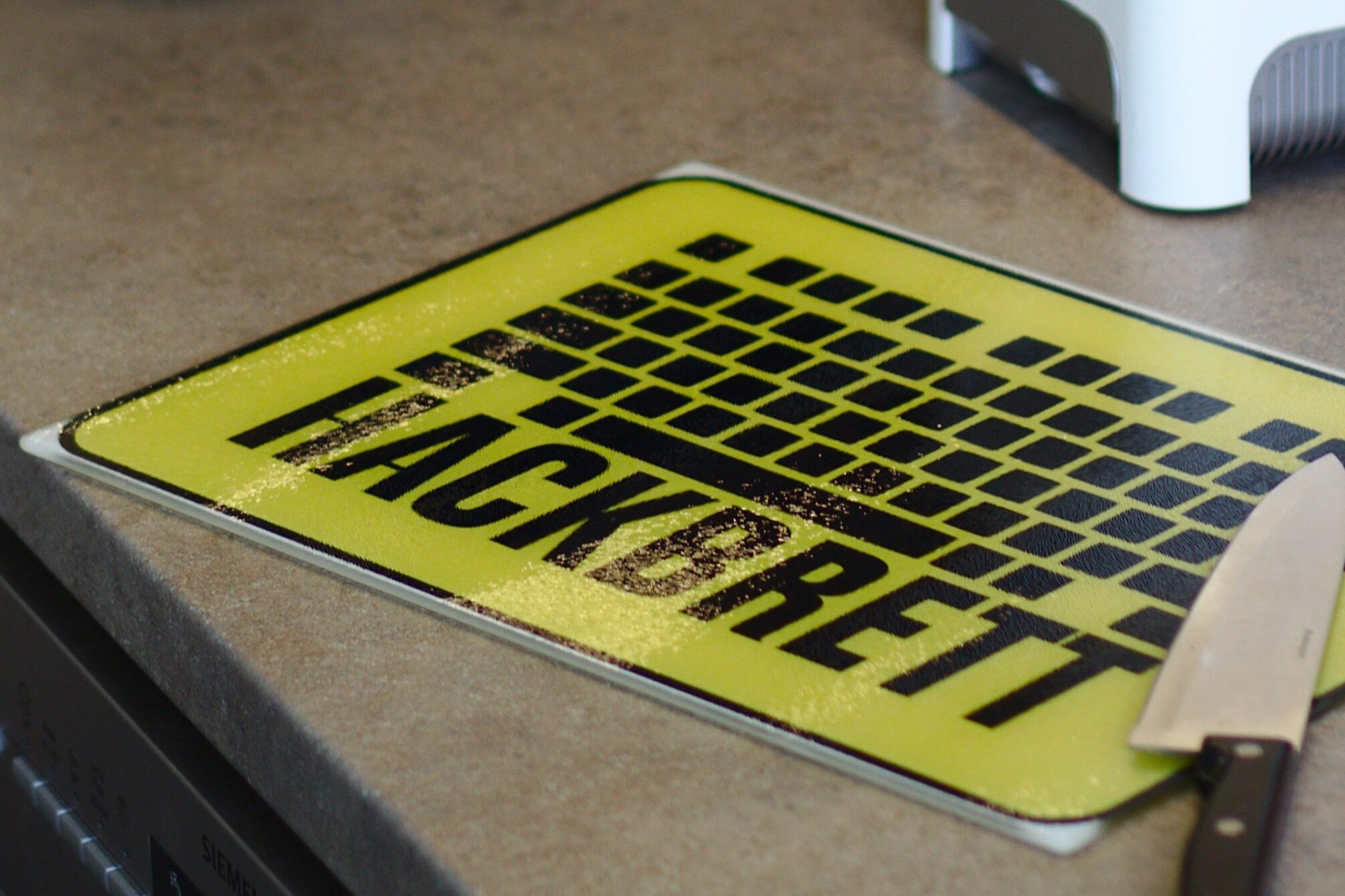 Hackbrett Frühstücksbrettchen Neulich habe ich einen Artikel über das Glas-Hackbrett geschrieben, welches Elektroll designt hat. Am Ende des Artikels überlegte ich, dass man das Logo auch…